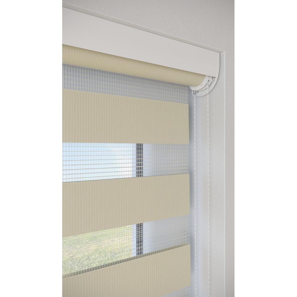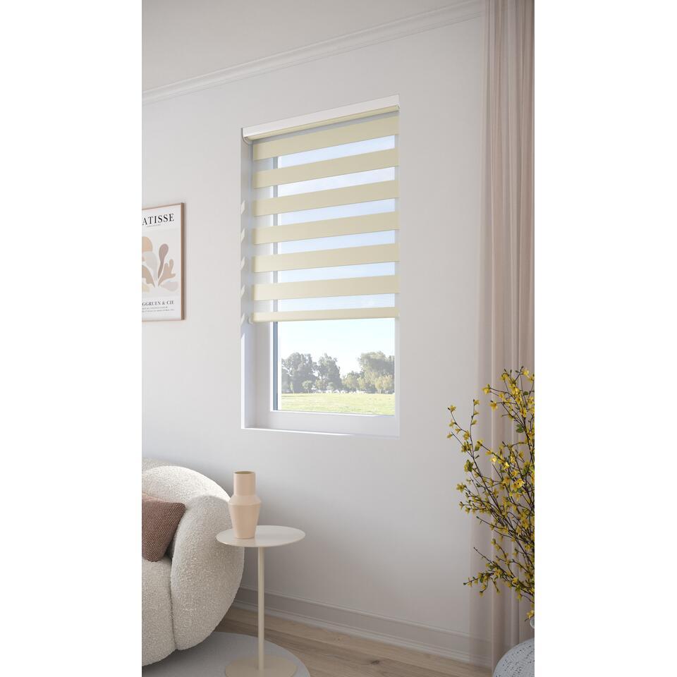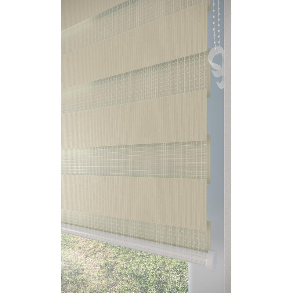 Duo rolgordijn Dean is in de kleur zand. Door middel van de polyester stof die is opgebouwd uit transparante en ondoorzichtige stroken, in combinatie met een ketting-systeem, kun je de lichtinval en privacy gemakkelijk bepalen in jouw woonkamer of keuken. Dankzij de stofeigenschappen van polyester is het duo rolgordijn makkelijk schoon te maken met een vochtige doek.