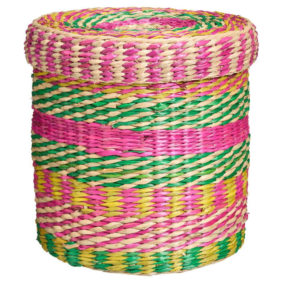De Auvillar opbergmand met een diameter van 20 cm is een veelzijdige en kleurrijke toevoeging aan kinder- en woonkamers. Gemaakt van 100% natuurlijk zeegras biedt deze ronde mand met deksel een speelse multicolor afwerking die een vrolijke sfeer toevoegt aan je interieur. Perfect voor het opbergen van speelgoed dekens of andere items combineert de Auvillar mand functionaliteit met stijl en past moeiteloos in elk modern of natuurlijk interieur.