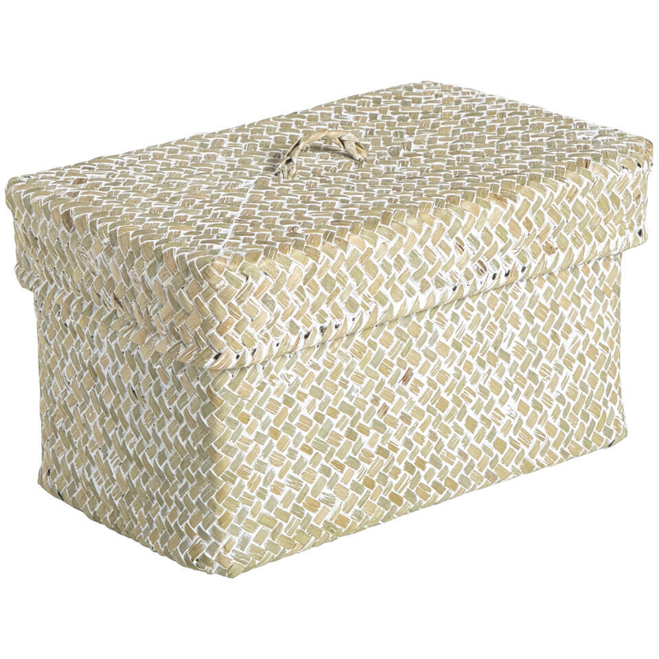 De Hem opbergmand in wit is een compacte en stijlvolle oplossing voor het opbergen van kleine spullen in de woonkamer of kinderkamer. Gemaakt van 100% gras en voorzien van een handig deksel, houdt deze opberger alles netjes uit het zicht. Met afmetingen van 23x14x13 cm (lxbxh) past hij perfect in elk interieur.
