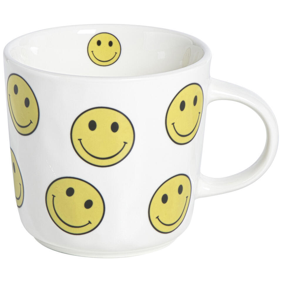 Start je dag goed met deze grote mok met vrolijke Smiley! Deze wit met geel gekleurde koffiemok is perfect als theemok, cappuccino of koffie mok. De mok is gemaakt van aardewerk (stoneware) en ligt fijn in de hand doordat de mok voorzien is van een oor. Praktisch in gebruik: deze grote mok is magnetron- en vaatwasserbestendig, dus ideaal voor dagelijks gebruik. Voeg een glimlach toe aan je koffiemoment met deze stijlvolle en functionele mok. Een must-have voor elke koffieliefhebber!