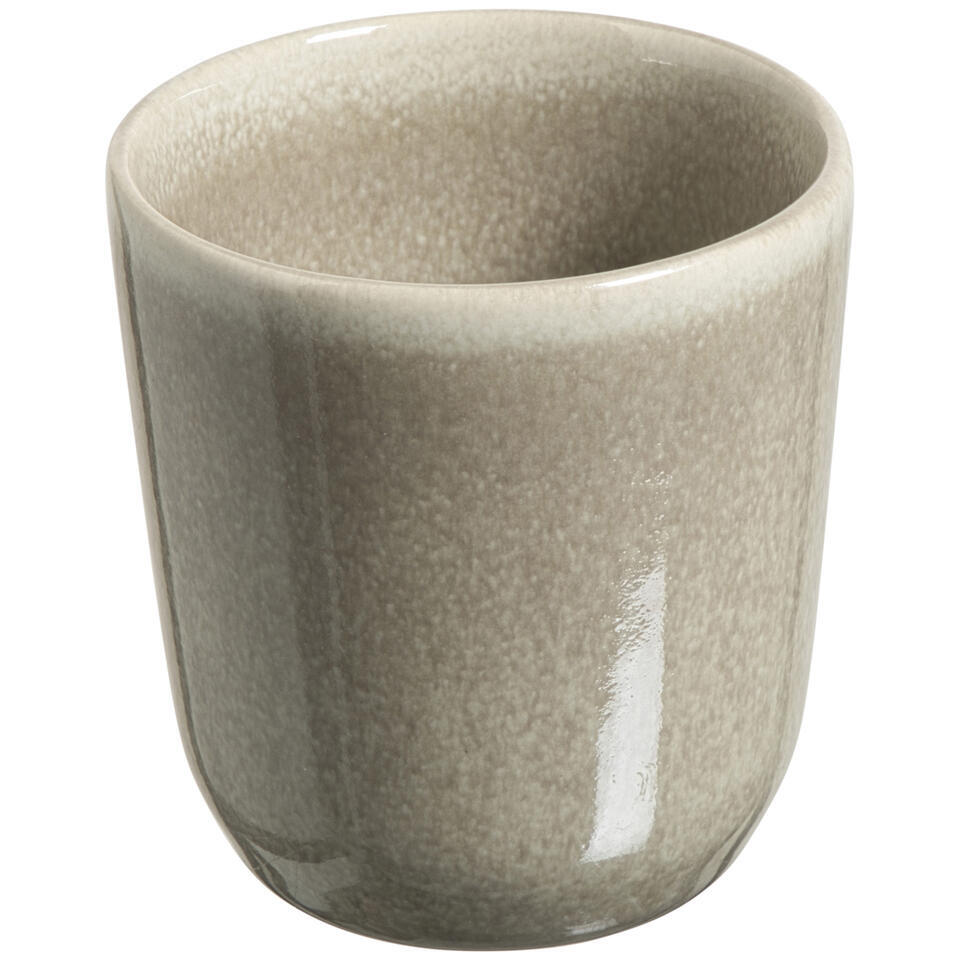 De Ava koffiemok in een zand kleur combineert een sfeervolle en moderne uitstraling met functionaliteit. Met een inhoud van 200 ml is deze mok zonder oor perfect voor je favoriete koffie. Gemaakt van hoogwaardig aardewerk (stoneware) en afgewerkt met een elegante bruine rand, past deze mok moeiteloos in elk servies. Het stijlvolle ontwerp maakt de Ava mok een must-have voor wie houdt van eigentijds en functioneel servies.