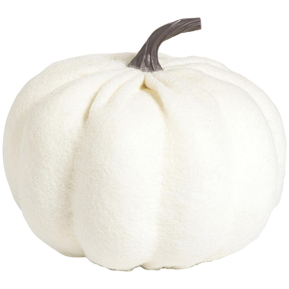 Breng de herfst in huis met deze charmante off-white pompoen, gemaakt van vilt. Met een diameter van 20 cm is dit ronde ornament perfect als decoratie in de woonkamer of kinderkamer. De warme uitstraling past prachtig bij het herfstseizoen. Dit unieke object voegt sfeer toe aan ieder interieur en is een must-have voor liefhebbers van stijlvolle en natuurlijke decoratie.