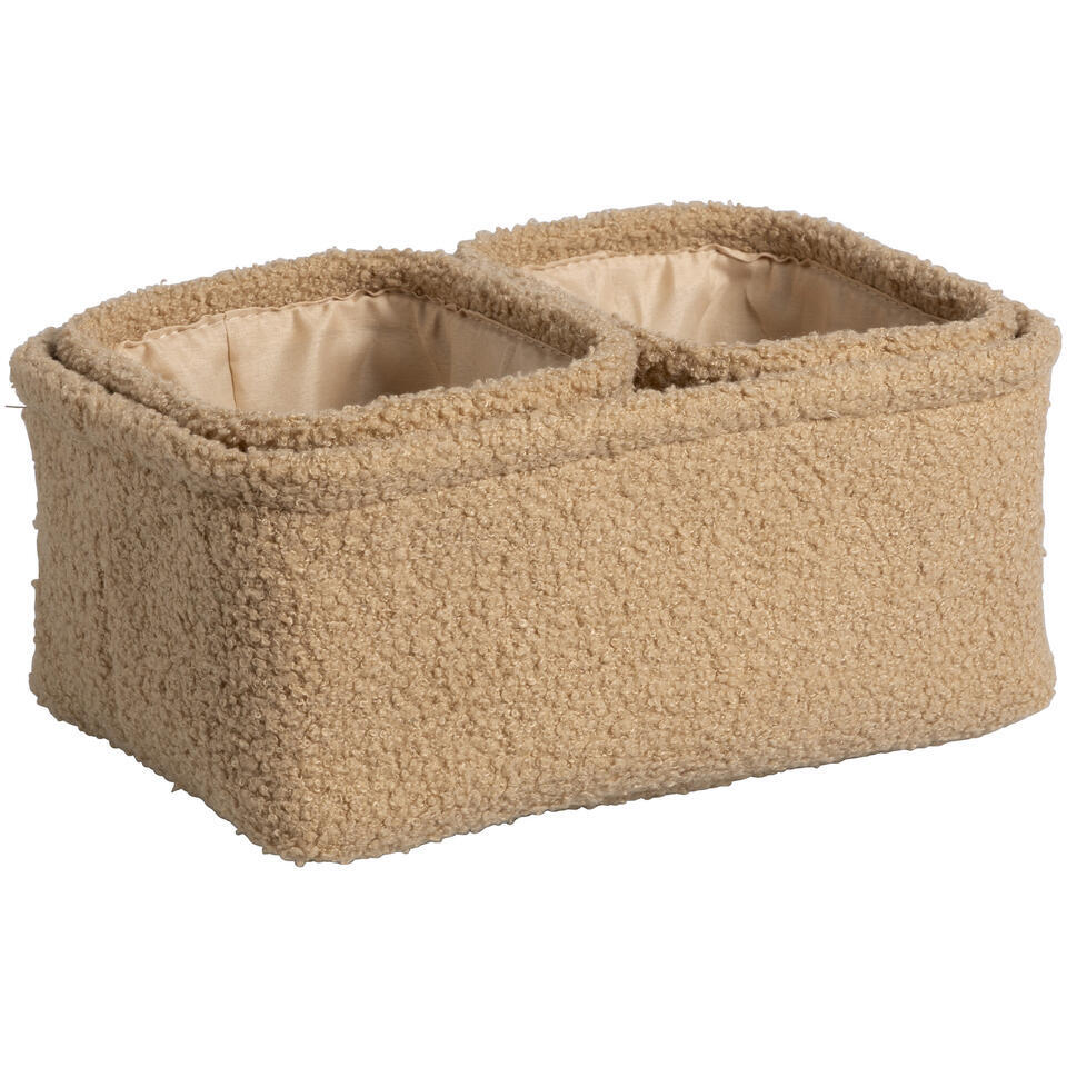 Deze Teddy opbergmanden in camelkleur zorgen voor een opgeruimde en sfeervolle kinderkamer of speelkamer. De set bevat 3 stuks in verschillende afmetingen, ideaal voor het opbergen van speelgoed, dekens en andere spullen. Gemaakt van 100% polyester, voelen ze heerlijk zacht aan en passen ze perfect in elk interieur. Praktisch en decoratief, deze manden combineren functionaliteit met stijl.