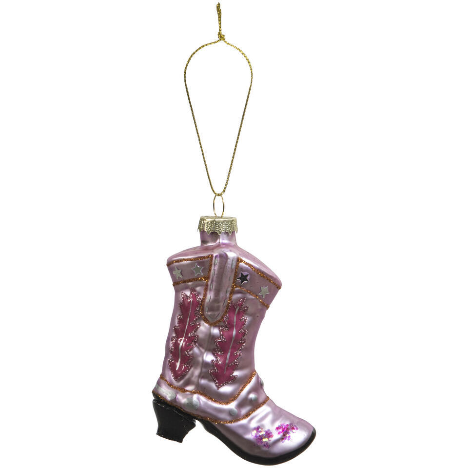 Dit opvallende kerstornament in de vorm van een Cowboylaars combineert feestelijke gezelligheid met de stoere cowboy-trend. Dit lichtroze, glazen kerstornament is een unieke toevoeging aan je kerstdecoratie. Gebruik dit speelse ornament als kersthanger, trendy kerstboomversiering of originele kerst decoratie. Deze bijzondere kerstversiering geeft je boom en interieur een vrolijke, moderne uitstraling en maakt je feestdagen extra stijlvol en feestelijk.