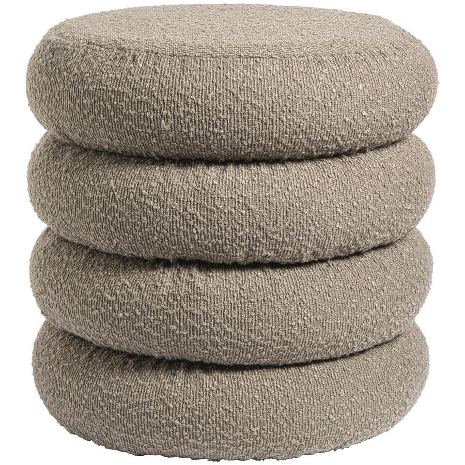 Poef Prato is een echte blikvanger in je interieur dankzij zijn speelse, stapelachtige vorm en warme taupe kleur. Het unieke ontwerp geeft karakter en zorgt voor een gezellig en uitnodigend effect in elke ruimte. Met de zachte foamvulling en luxe bouclé stof biedt deze poef optimaal comfort, of je hem nu gebruikt als extra zitplek, voetenbankje of decoratief accent in de woonkamer, slaapkamer of hal. Ondanks de zachte uitstraling is hij stevig en heeft hij een draagvermogen tot 110 kg. Dankzij de moderne vorm en stijlvolle bekleding past deze poef perfect in zowel minimalistische als opvallendere interieurs.